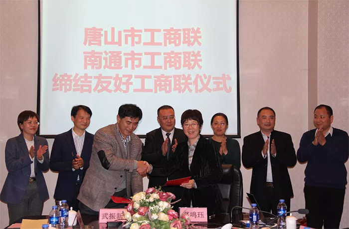 12月5日,“冀唐情·通商梦”唐山市江苏商会南通分会揭牌仪式在河北唐山举行。同时,唐山市工商联与南通市工商联缔结友好工商联,签订《缔结友好商会协议书》。