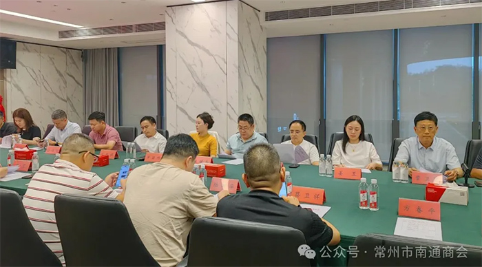 2025年9月24日下午,常州市南通商会一届四次理事(分组)会议暨一届九次会长会议在副会长单位——常州制药厂有限公司会议室顺利召开。商会会长丁佐勇,副会长石建忠、顾仁、蒋建生、陈叶、方春平、葛永琪、蔡卫祥、季中华、隋红兵、曹卫国、姜昱、黄 宇、高钢、陆建华(恒捷)、单丽燃、周晓朋、张煡东、黄德明、李军、陈杨、张海飞、张彐君,监事长俞伯俊及秘书处成员参会,会议由商会党支部书记张卫东主持。